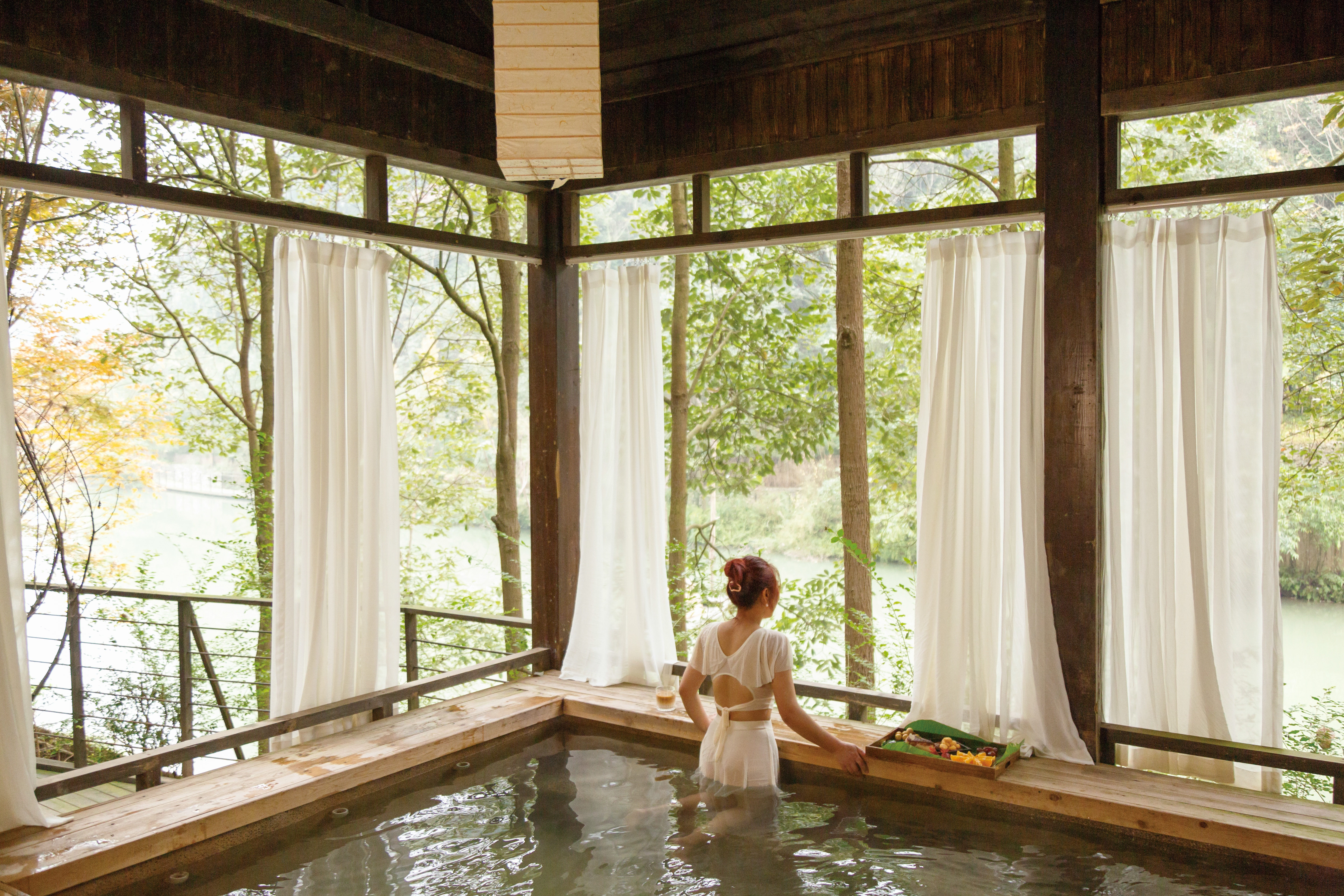 冬日崇州的另一张王牌,是散落在山间的天然温泉。归峪梵谷的竹林私汤、三郎镇云上自然缘的森林温泉、街子古镇旁青城山路之绿谷度假酒店的恒温泳池……推开窗便是雪山云海,泡着温泉看日出,是独属于川西的冬日浪漫。